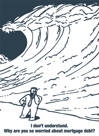 If property values fall 40% from the peak, approximately $5 trillion of mortgage debt will be “rotten” and prone to default. What do you do with “rotten” debt after a credit mania? What do you do with “rotten” debt when one of three mortgage-dollars owed is a default candidate? Do you follow Mr. Wolf and say it has no importance? I say you do the exact opposite.