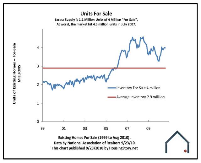 Sales remain deeply depressed with 11.6 months of inventory available for purchase and an estimated 1.1 million excess units actively in the market after an uptick in August sales of 7.6 percent.