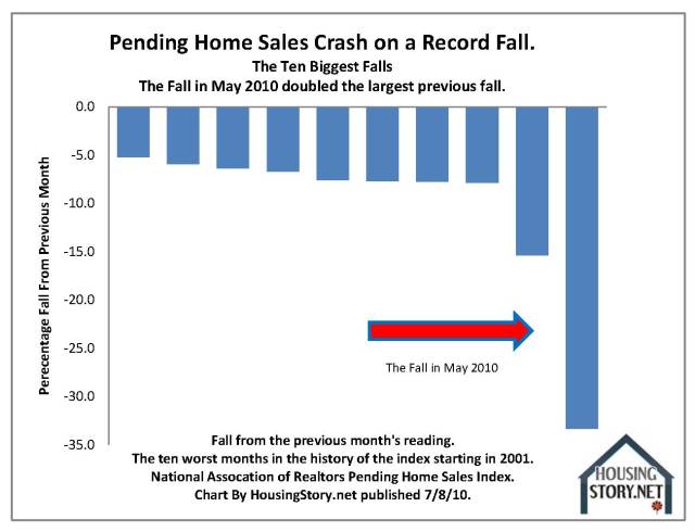 “If you’re looking for a silver lining in housing, you aren’t going to find it here,” Mike Larson of Weiss Research said. “Demand has fallen off a cliff in the wake of the tax credit expiration, with pending sales falling by the biggest margin ever to the lowest level ever.”